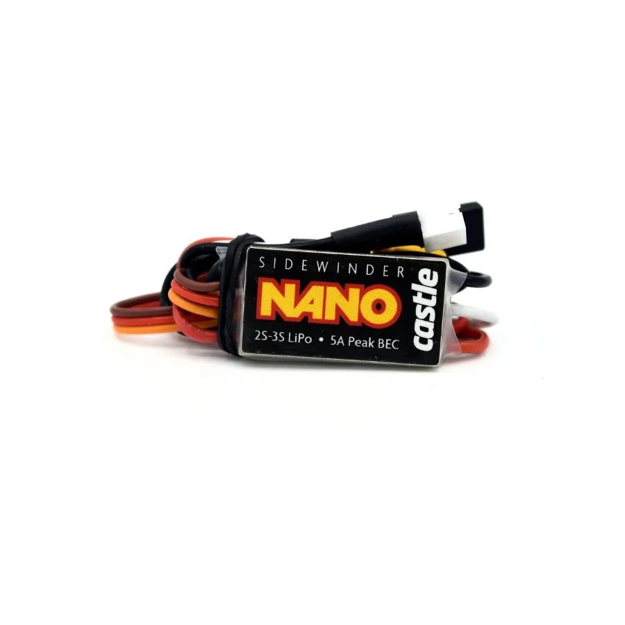 We are thrilled to add a performance upgrade solution to the ever-growing micro-scale phenomenon in R/C. The SIDEWINDER NANO may be small in stature, but it’s colossal in power and includes our proprietary CRYO-DRIVE™ Technology resulting in improved thermal performance during partial throttle operation where the majority of driving occurs. The Sidewinder Nano is ready-to-run out of the box but can also be “tuned” for the drivers’ preferences using a Windows® based PC and a Castle Link USB adapter (sold separately) , or with a mobile device using Castle B-Link Bluetooth® Adapter (sold separately).
